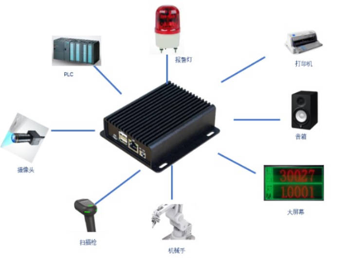 2. 强大的扩展能力:可以连接各种外设:音箱、鼠标、扫描枪、键盘、显示屏、机械手、输送线、PLC、打印机... 更好的满足场景管理的要求